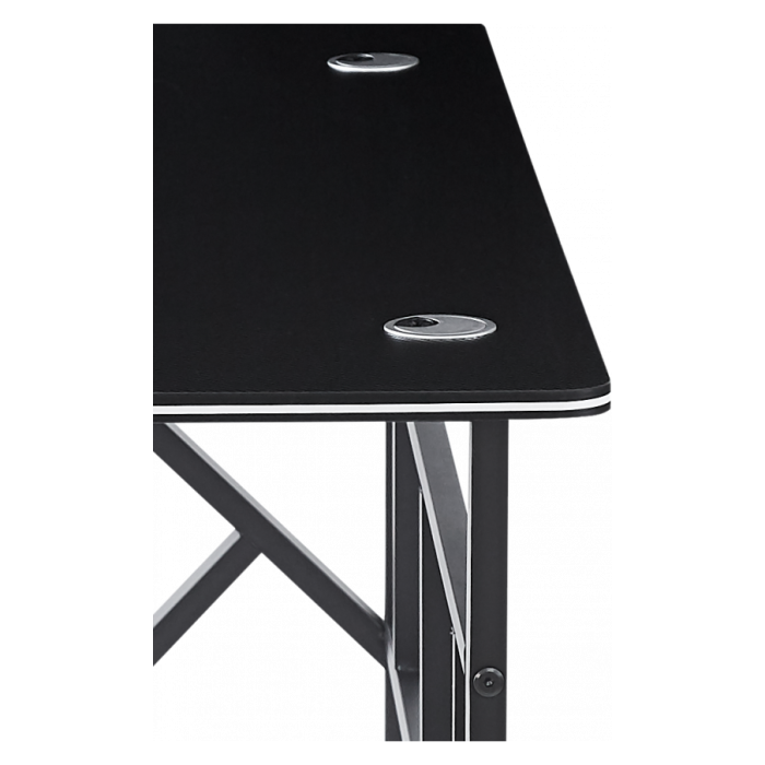 Конструкция стола оснащена системой кабель-менеджмента, которая помогает аккуратно упорядочить провода, предотвратить их спутывание и сохранять аккуратность рабочей зоны.
