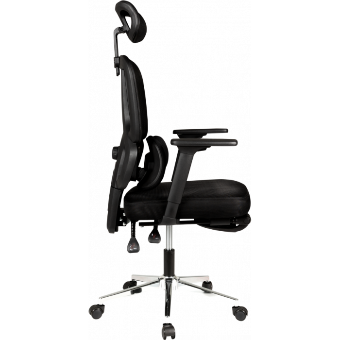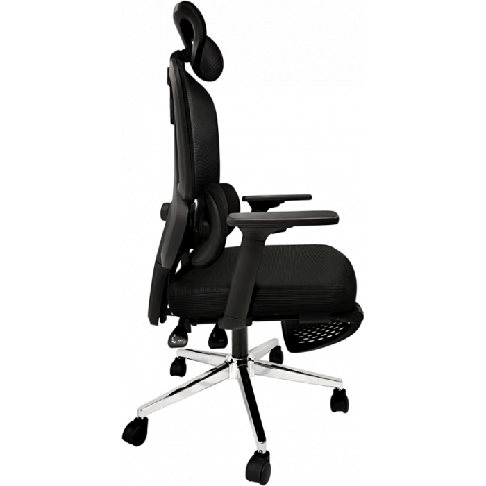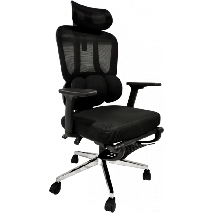 GT Racer B-5003 – современное офисное кресло с сетчатой спинкой, мягким сиденьем и классическим офисным дизайном, которое подчеркивает элегантность и практичность в рабочем пространстве. Сочетать данную модель с любым интерьером будет очень просто благодаря классическому черному цвету обивки. GT Racer B-5003 создано для ежедневного использования, сочетая комфорт, легкость перемещения и персонализацию положения пользователя. Выдвижная подножка позволяет расслабить ноги во время коротких перерывов, а крестовина с роликами обеспечивает плавное и устойчивое перемещение кресла по разным типам поверхности. Газлифт Евростандарт гарантирует точную регулировку высоты сиденья, что позволяет адаптировать кресло под индивидуальные параметры пользователя. Материалы обивки — это сетка на спинке и ткань на сиденье, которые обеспечивают хорошую воздухопроницаемость, поэтому даже в жаркую погоду в кресле будет комфортно сидеть.