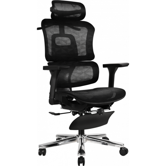 Выдвижная подножка даёт возможность расслабить ноги во время перерывов, улучшает кровообращение и снижает усталость ног, обеспечивая дополнительный комфорт даже во время коротких пауз в работе.