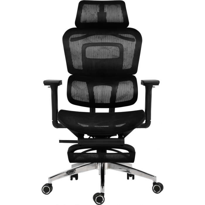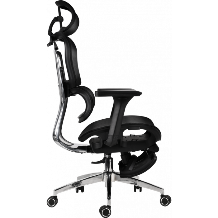 Выдвижная подножка позволяет снять нагрузку с ног во время коротких перерывов, восстановить кровообращение и повысить общий комфорт использования. Подножка убирается под сиденье, не нарушая эстетики кресла.