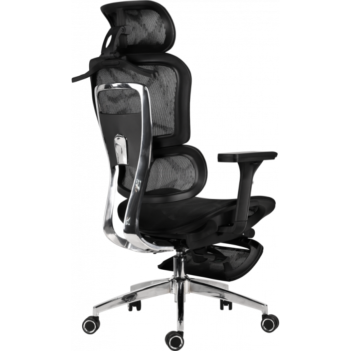 Модель предусматривает поддержку естественного положения тела при длительном нахождении в кресле. Сиденье имеет анатомический профиль, обеспечивающий комфорт и равномерное распределение веса. Конструкция кресла способствует снижению напряжения в спине и плечевом поясе, поддерживая правильную посадку во время работы. Подголовник позволяет разгрузить шейный отдел и плечи, создавая ощущение естественного комфорта. Подножка делает отдых между работой более полноценным и расслабляющим.