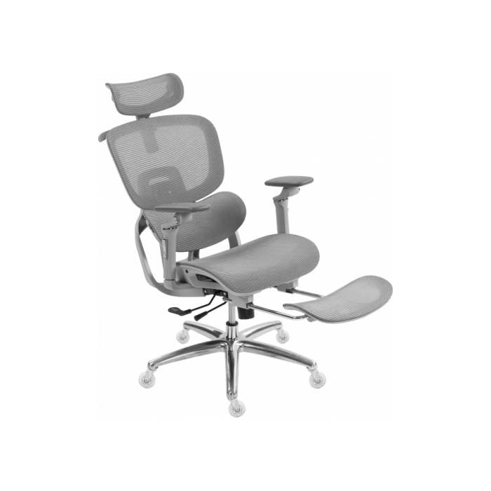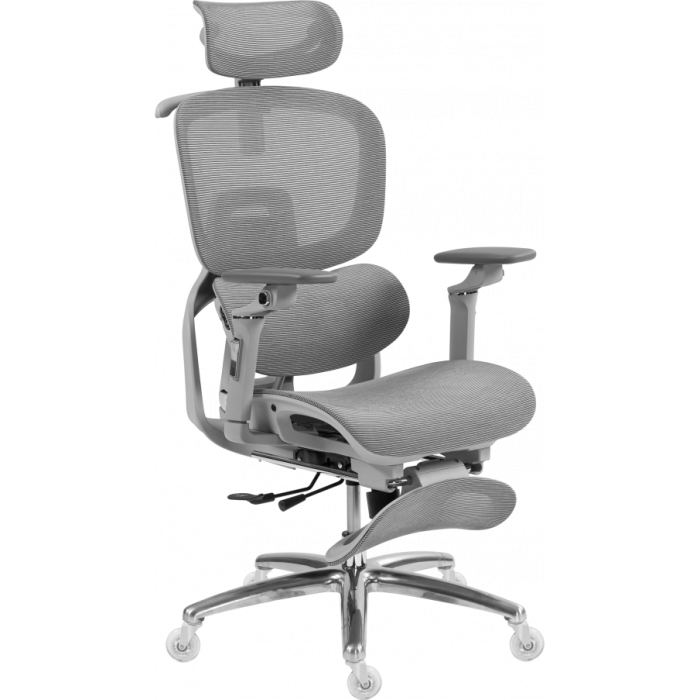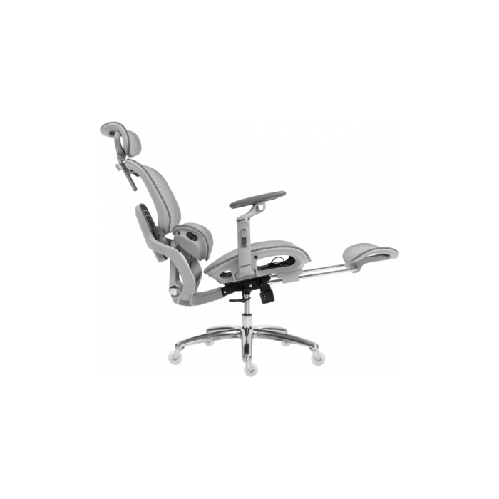Дополнительные функции включают регулировку глубины сиденья, что позволяет адаптировать посадку под длину ног, а также поясничную поддержку с функцией массажа и подогрева - технологичный бонус для расслабления мышц во время перерывов. Для полного расслабления и отдыха предусмотрена подножка, которая в сочетании с откинутой спинкой обеспечивает полноценный комфорт.