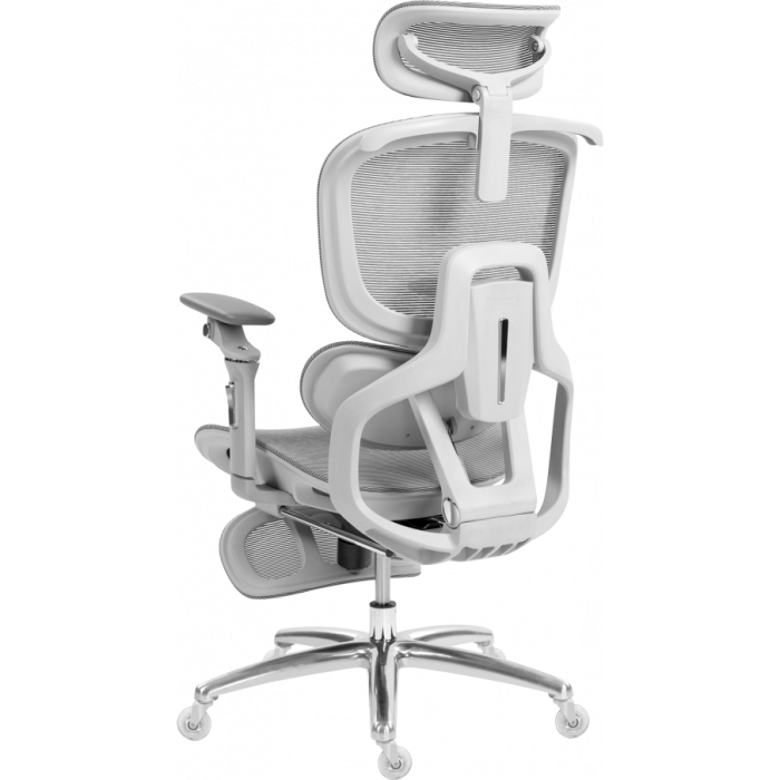 Высота сиденья легко регулируется с помощью газлифта, что позволяет подстроить положение под рост пользователя до 190 см и высоту стола. 6D-подлокотники с мягкими накладками предоставляют широкие возможности настройки: регулировку по высоте, вверх/вниз, вперед/назад, влево/вправо и другие параметры, что снижает нагрузку на плечи и предплечья. Регулируемый подголовник поддерживает шейный отдел и снимает напряжение в верхней части спины, способствуя правильному положению головы.