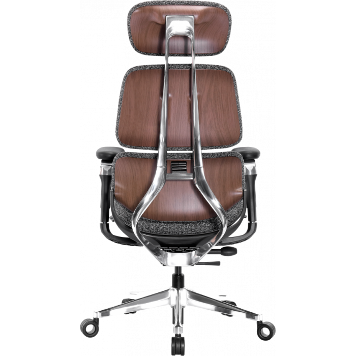 Угол наклона спинки от 90° до 130°. Механизм фиксирует положение в пределах этого диапазона, позволяя переходить от рабочей позиции к полулежачему состоянию для релакса. Спинка состоит из двух частей, где нижняя имеет поясничный изгиб для поддержки.